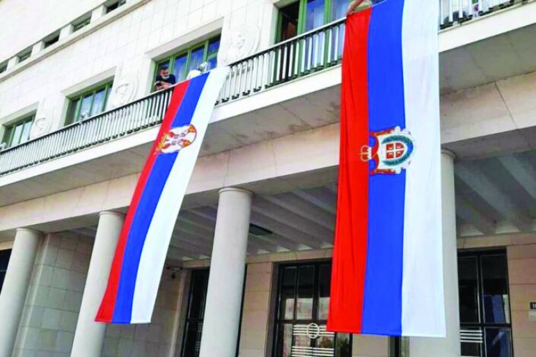 Igor Mirović i Miloš Vučević na dan kada je na zgradu Pokrajinske vlade istaknuta tradicionalna srpska zastava