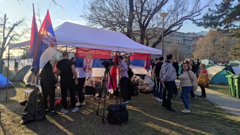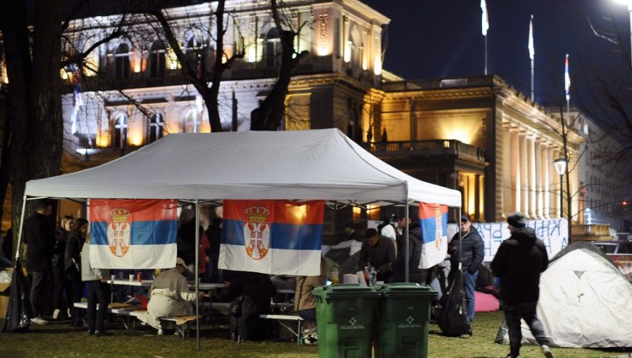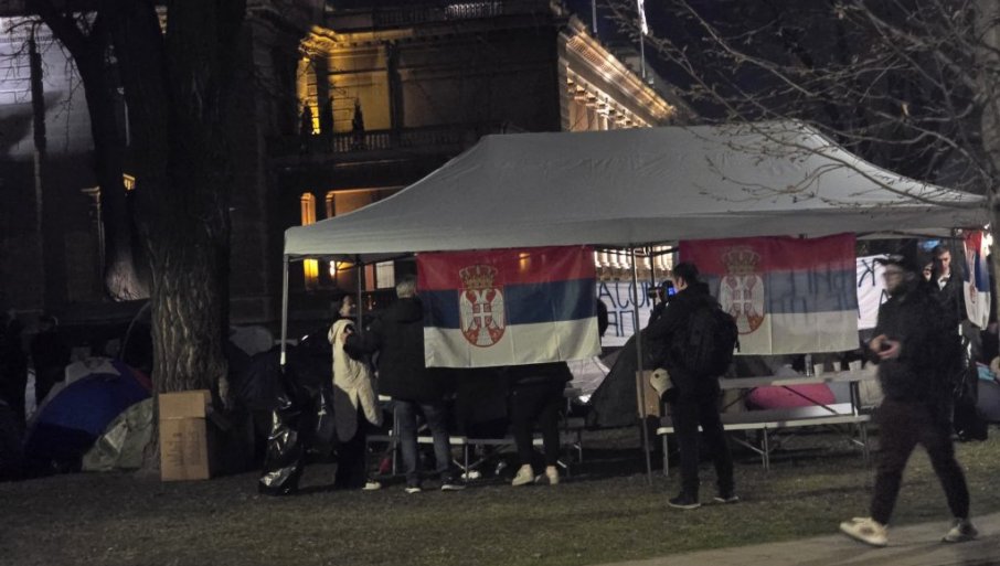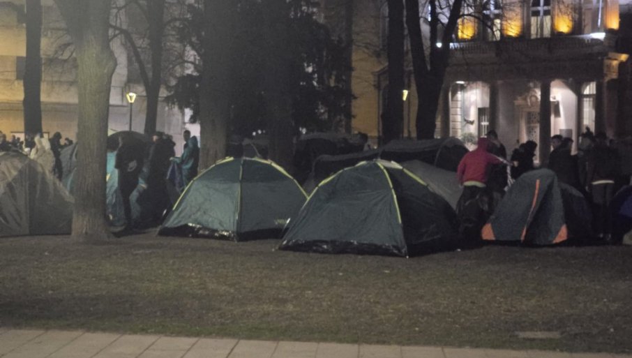Studenti koji žele da studiraju proveli su noć u šatorima u Pionirskom parku, gde je upravo intonirana himna Bože pravde.