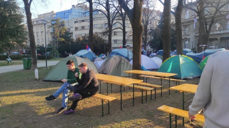 Penzineri u sve većem broju pristižu u Pionirski park kako bi podržali studente koji žele da uče i koji su celu noć proveli napolju u šatorima.