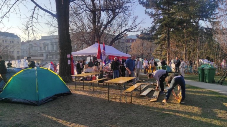 Oni su kako su zabeležili naši reporteri posltavili šatore i imaju nameru da u tim šatorima provedu celu noć.