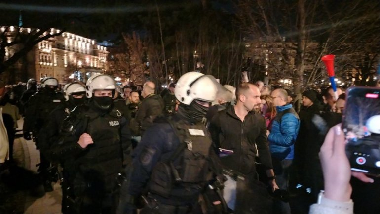 Osvrnuo se i na kordon koji je razdvajao studente u blokadi i okupljene u udruženju "Studenti 2.0", u Pionirskom parku, posle protesta ispred RTS-a.