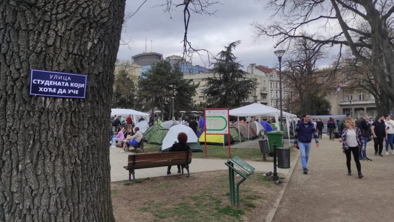 U PIONIRSKOM parku, gde već peti dan borave studenti koji žele da studiraju, pojavile su se table sa natpisima "ulica studenata bez roleksa" i "ulica studenata koji hoće da uče".