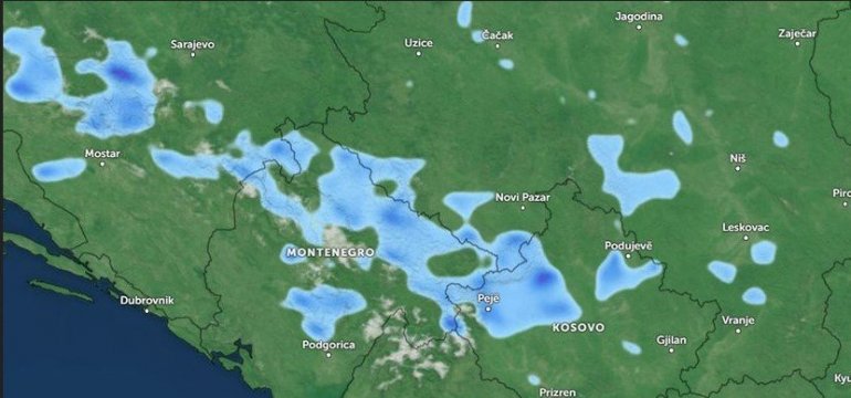 U ovom času nad jugom i jugozapadom Srbije ima jačeg razvoja oblačnosti, ponegde uz lokalne pljuskove sa grmljavinom, naročito na širem području Novog Pazara, na padinama Kopaonika i nad delovima Kosova i Metohije.