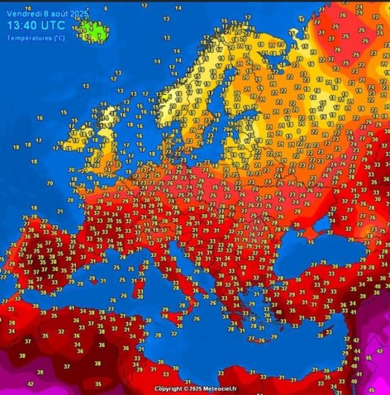 Još vrelije je na jugozapadu Evrope, uz temperature iznad 40 stepeni.