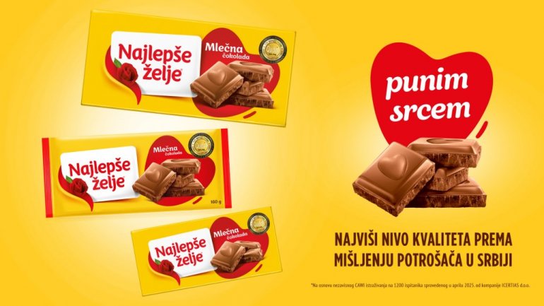 Oslanjajući se na kvalitet, stručnost u proizvodnji i posvećenost tradiciji, čokolada Najlepše želje ostaje autentična, prava čokolada koja uvek oduševljava i spaja ljude širom regiona. Ova čokolada nije samo slatki užitak – ona je simbol čiste radosti i dubokog zajedništva koje traje već više od 100 godina. Posebno priznanje za ovu posvećenost kvalitetu dolazi u vidu prestižne QUDAL – QUality meDAL nagrade, koju je brend Najlepše želje osvojio u kategoriji čokolada u Srbiji. Najviša vrednost ovog priznanja dolazi iz činjenice da je rezultat izbora samih potrošača. QUDAL je međunarodni simbol kvaliteta, i dodeljuje se samo brendovima koje potrošači prepoznaju kao lidere u svojoj kategoriji. Potrošači mogu biti sigurni da će svaki komadić čokolade Najlepše želje uvek biti dosledan kvalitetu, proizveden prema najvišim standardima punim srcem