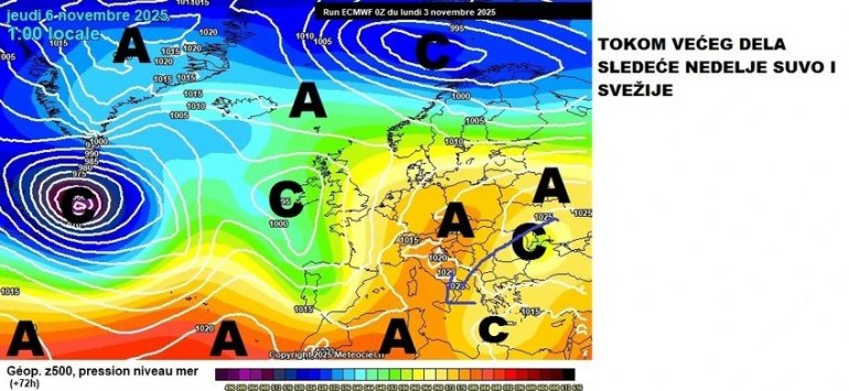 Mrazevi se očekuju uglavnom van većih gradskih sredina. Krajem nedelje, oko 10. novembra moguće je manje pogoršanje uz naoblačenje i pojavu slabih padavina ponegde. Jutarnji mrazevi bi izostali, a dnevne maksimalne temperature će biti od 7 do 13 stepeni Celzijusa.