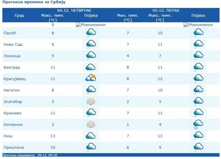 Za 4. decembar RHMZ je najavio: