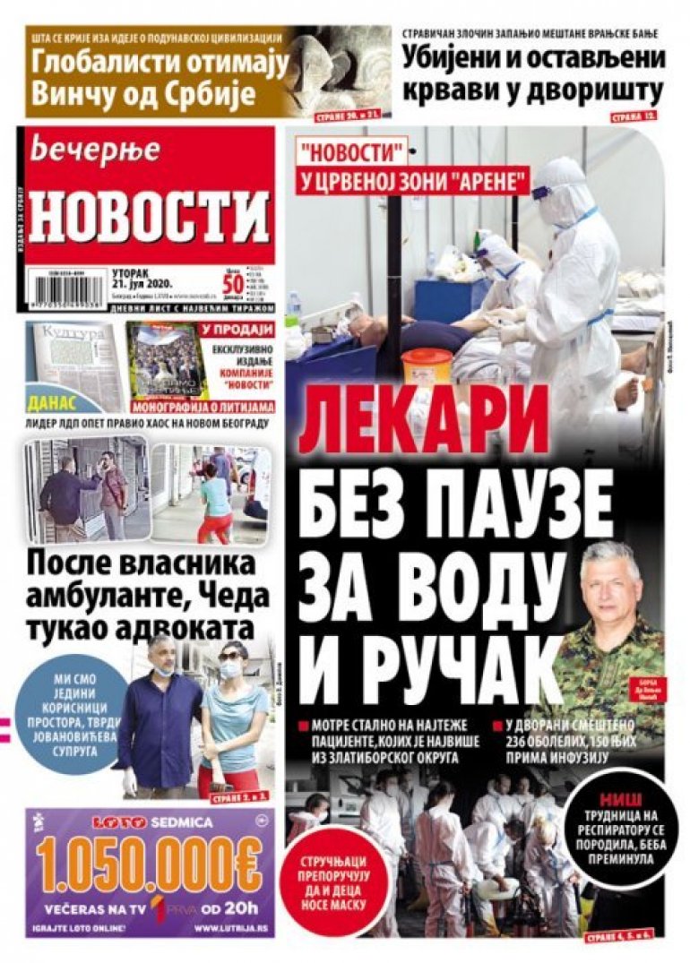 "NOVOSTI" U CRVENOJ ZONI "ARENE": Lekari bez pauze za vodu i ručak - ČITAJTE U NAŠEM ŠTAMPANOM IZDANJU