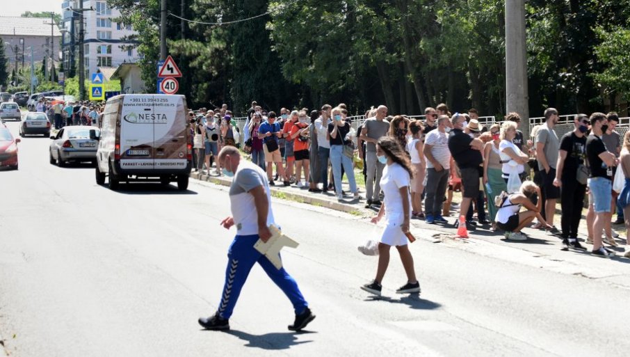 ISPRED Instituta Torlak građani su formirali kilometarski red zbog testiranja na virus korona. Većina ljudi koji čekaju u redu došli su da se testiraju zbog putovanja u Crnu Goru.