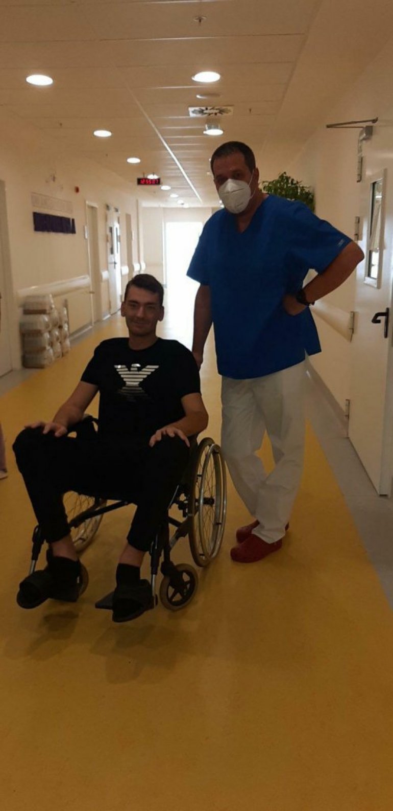 Prvi put je ponovo stao na sopstvene noge, zakoračio, a ta slika je poslata kolegama u kovid-zoni, koje su ga nedeljama lečile. Za nekoliko minuta pored slike zasvetlelo je 60 srca i poruka: "Živi, Peđa".