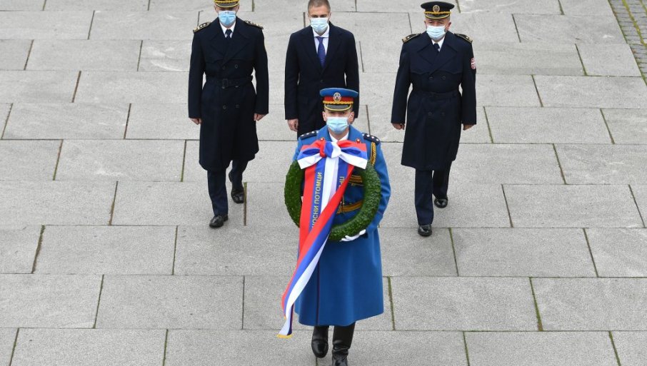Stefanović je venac položio, u pratnji načelnika Generalštaba Vojske Srbije generala Milana Mojsilovića i načelnika Kabineta ministra odbrane brigadnog generala Siniše Kresovića, uz najviše vojne počasti, himnu Republike Srbije i svečani stroj Garde.