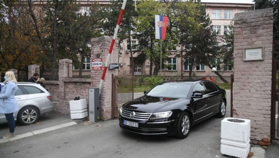 U VMC Karaburma upravo je stiglo vozilo iz Patrijaršije, a službenik je izneo krst, ikonu i knjigu, najverovatnije Sveto pismo i predao svešteniku na vratima bolnice.