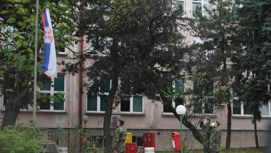 ZASTAVA NA POLA KOPLJA: Trenutak kada vojnici ispred VMC Karaburma spuštaju obeležje Srbije zbog Irineja (FOTO)