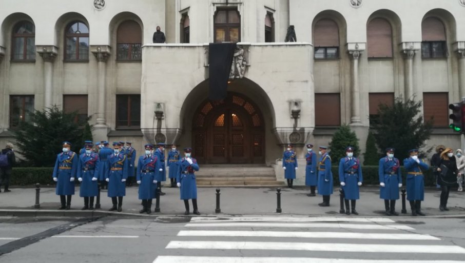 Kovčeg s telom patrijarha Irineja stigao je ispred zgrade Patrijaršije SPC oko 8 i 20 u koloni vojnih vozila.