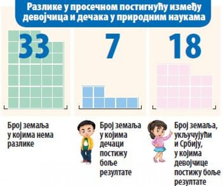 Istraživanje je pokazalo da su naši dečaci i devojčice podjednako uspešni iz matematike, dok iz prirodnih nauka blagu prednost imaju devojčice.