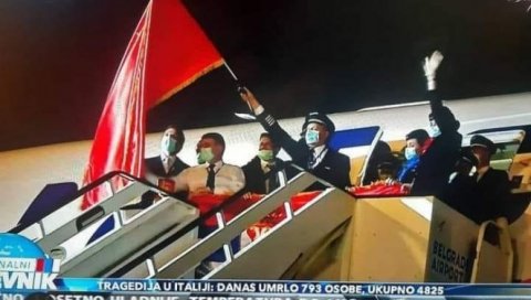 Kada je avion sleteo na aerodrom "Nikola Tesla", kapetan Vranić je razvio kinesku zastavu.