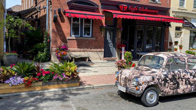 "Zastava 750" je specijalno dizajnirane spoljašnosti koja ima za cilj da predstavi Jugoslaviju kakvu je pamte on i mnogi njeni stanovnici koji sada žive u Americi i svraćaju u njegov čuveni kafe.