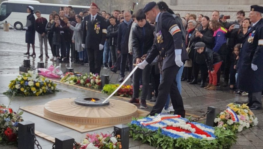 PLAMEN na spomeniku Neznanom junaku ispod Trijumfalne kapije gori za sve vojnike, Francuze i saveznike, stradale u borbama od Prvog svetskog rata do današnjih dana. Gori, dakle, i za Srbe. Naše savezništvo od 1914. do 1918. je nadaleko čuveno. Ne zaboravimo na ogromno Srpsko groblje u Tijeu, kod Pariza, gde se nalazi 747 grobova srpskih vojnika koji su poginuli zajedno sa Francuzima, za isti ideal i ciljeve.