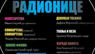 Radionice su namenjene ljubiteljima slikarstva (staklo i tekstil), maketarstva, muzike, filma, tkanja i veza, dekupaž tehnike i izrade nakita.