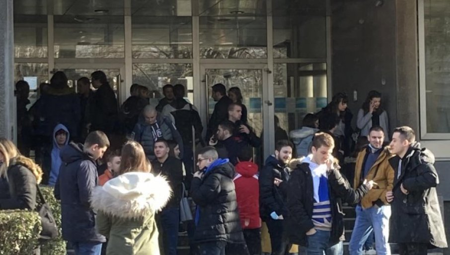 ISPITNI rok na Fakultetu političkih nauka u Beogradu je u punom jeku, pa se tako ispred ove ustanove jutros okupio veliki broj studenata.