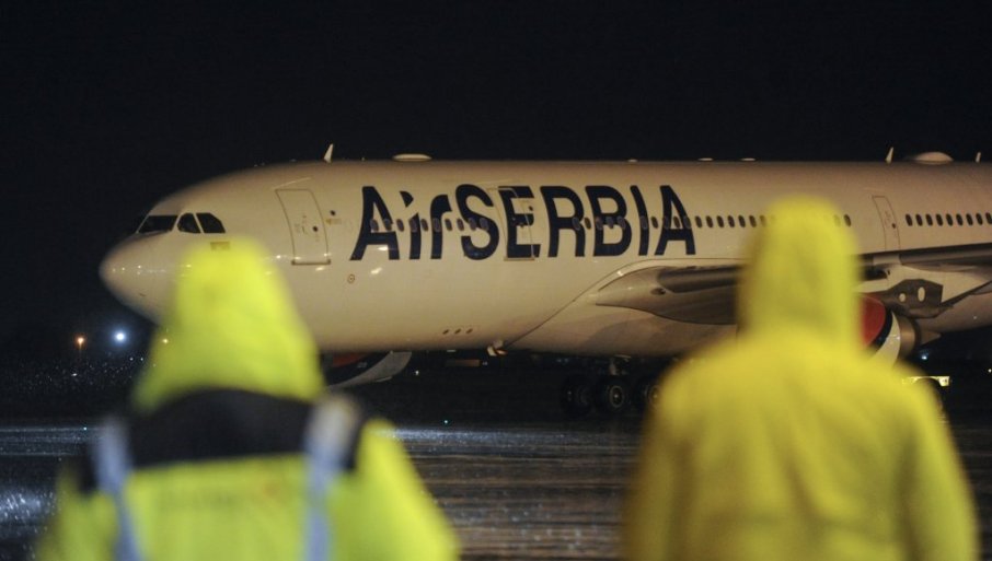 Avion je sleteo u 20:55 časova na aerodrom "Nikola Tesla", a nakon obilaska aviona premijerka i ambasadorka su se obratile javnosti.