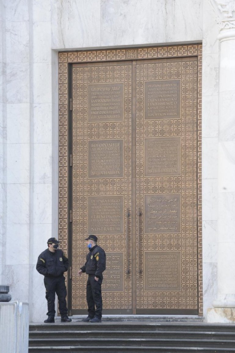 U Hram je pušteno samo par desetina vernika, a ulazna vrata Hrama čuvaju pripadnici MUP. Policijske patrole postavljene su i u okolini Hrama, kao i na ulazu u Parohijski dom.