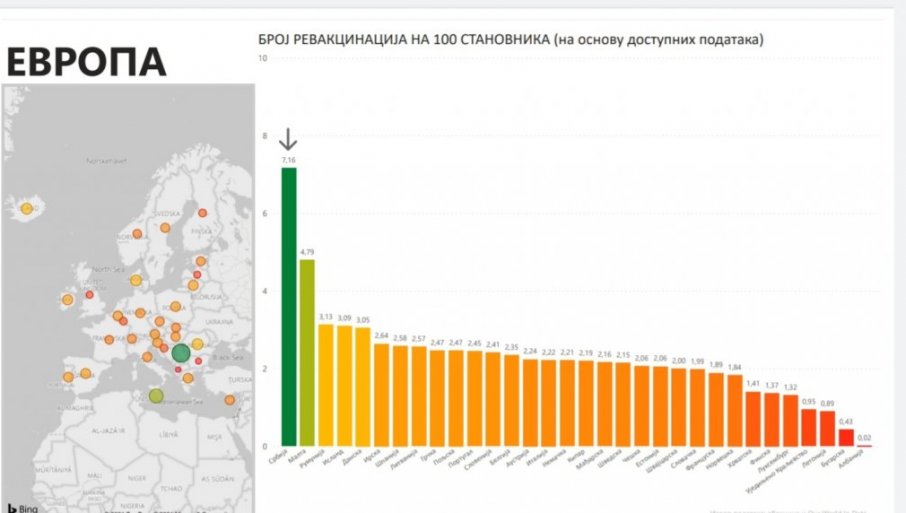 Poređenja radi, Srbija u apsolutnim brojevima ima više revakcinisanih građana nego što to zajedno imaju Mađarska, Slovenije, Hrvatska, Bugarska, Crna Gora, Severna Makedonija i Albanija.
