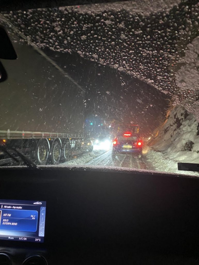 Na deonici u mestu Bistrica došlo je do zastoja i formirana je kolona u kojoj se nalazilo desatak šlepera čiji vozači su sprečeni da nastave vožnju.