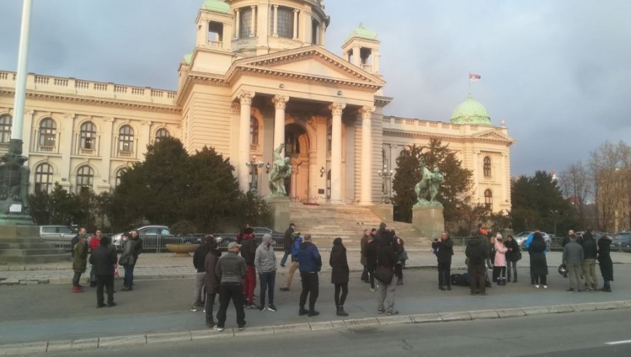 Okupljeni su blokirali ulicu ispred skupštine na Trgu Nikole Pašića.