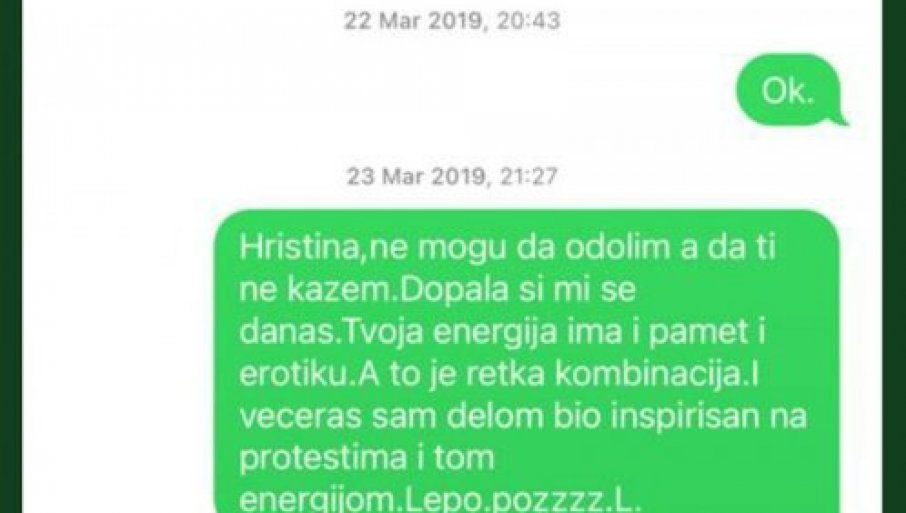 - Hristina, ne mogu da odolim, a da ti ne kažem. Dopala si mi se danas. Tvoja energija ima pamet i erotiku. A to je retka kombinacija - poslao joj je navodno Lečić nakon gostovanja 23. marta. 2019. godine.
