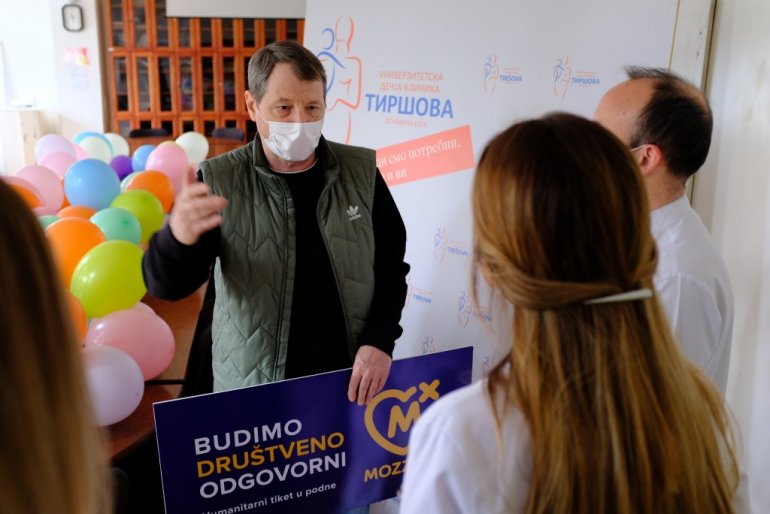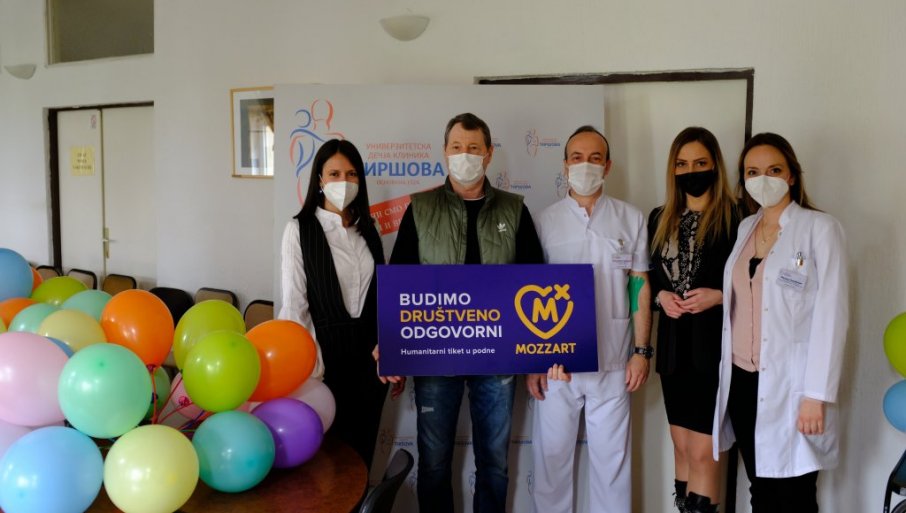 - U ime rukovodstva Dečje klinike želim da se zahvalim Mozzartu što organizuje ovakve akcije i Moki Slavniću koji je prepoznao nas kao mesto kome je potrebna pomoć. Naša ustanova je već 90 godina sinonim dečje medicine na ovim prostorima. Ova zgrada je počela da se gradi još 1936, a posle Drugog svetskog rata postala je centar gde se leče najteži bolesnici iz svih oblasti, i pedijatrije i dečje hirurgije. Trenutno 140 dece leži zbog operacije ili dijagnostike ili ozbiljnih ispitivanja, a ova pomoć nam je dobro došla da se poboljšaju uslovi boravka, kao i način lečenja, pa je od velike pomoći našim malim pacijentima – naglasio je dr Vojislav Parezanović, načelnik pedijatrije Tiršova.