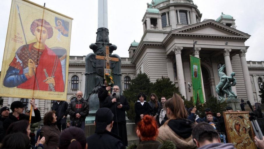 PONOVO KOLO NA SAVSKOM TRGU! Antivakseri i protivnici mera protestuju protiv zdravog razuma - skandalozno ponašanje u centru Beograda (VIDEO)