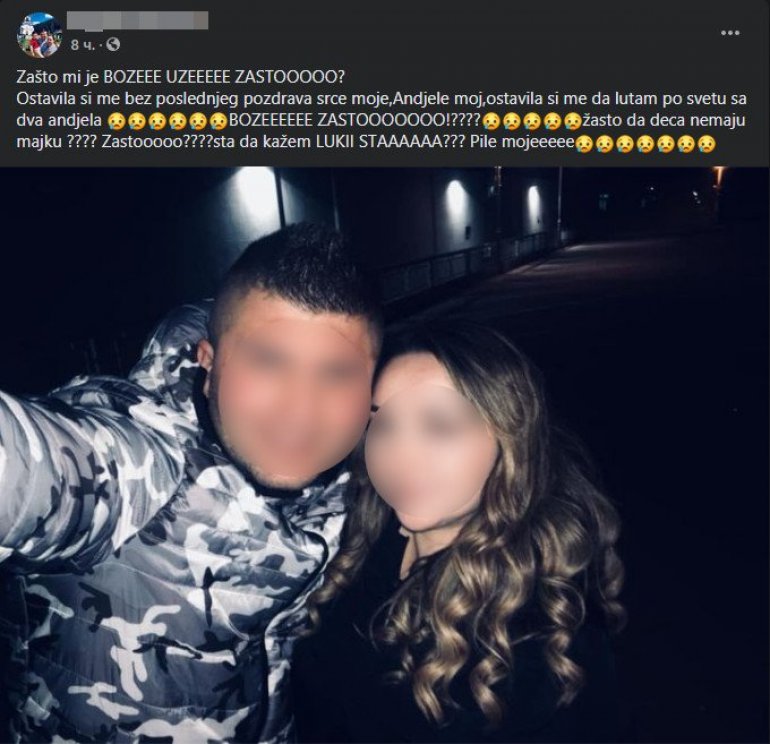 - Zašto mi je Bože uze? Ostavila si me bez poslednjeg pozdrava, srce moje, anđele moj! Ostavila si me da lutam po svetu sa dva anđela. Bože, zašto deca da nemaju majku? Pile moje, šta da kažem Luki?