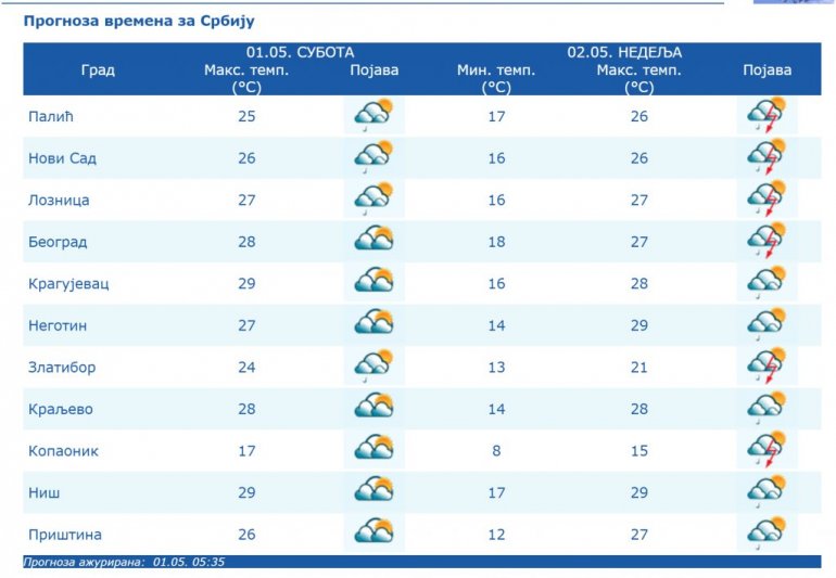 LETNJE TEMPERATURE PRVOG DANA MAJA: Danas toplije, ali oblačno, uskoro drastičan pad temperature