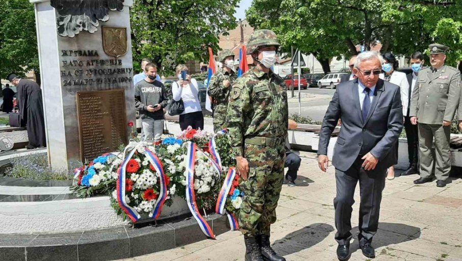 - Nalazimo se na mestu bezumlja i zločina NATO-a. Oni su se na današnji dan obračunavali sa nepostojećom vojskom na ovom mestu, sa nedužnim i nemoćnim civilima, decom, starima, sa nerođenom bebom, upotrebivši zabranjeno oružje i kasetnu municiju - rekao je juče general u penziji Vladimir Lazarević.