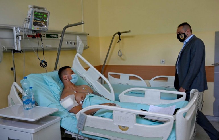 Vulin se zahvalio povređenom policajcu Rovčaninu na iskazanoj hrabrosti i poželevši mu brz oporavak, istakao da srpski policajci rade veoma težak i odgovoran posao i da zaslužuju svako poštovanje našeg društva.