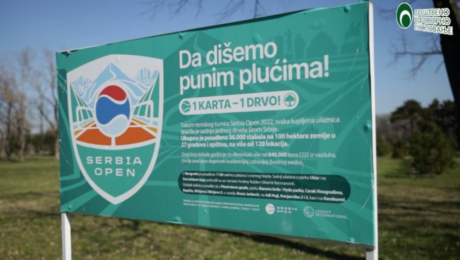 PROJEKTOM „Jedna karta – jedno drvo“, koji je podrazumevao da se za svaku prodatu kartu na „Serbia Open” teniskom turniru posadi jedno drvo u gradovima širom Srbije, organizator ove sportske manifestacije Legacy International zasadio je 36.000 sadnica platana i crvenog hrasta na više od 120 lokacija.