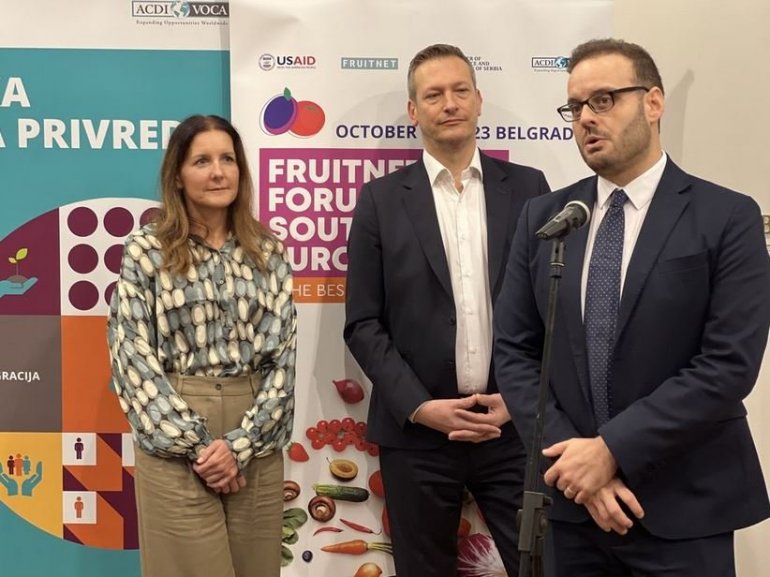 - Forum je usmeren ka malim i srednjim kompanijama, proizvođačima koji teško mogu da dođu do kupaca na ovom nivou. Sastanci su unapred dobro pripremljeni, svi kupci jako dobro znaju šta da očekuju, ali ono što je još važnije, mala i srednja preduzeća su pripremljena da se predstave i započnu ili nastave internacionalizaciju svog poslovanja“, izjavio je Mihailo Vesović, direktor Sektora za strateške analize, usluge i internacionalizaciju PKS. Tržište svežeg voća i povrća je veoma bitno za ukupnu privredu i poljoprivredu Srbije - ističe Vesović i navodi da voće i povrće čini 25 odsto našeg izvoza a da polovina tog voća završi na zahtevnom tržištu EU. Najavljuje da će zbog značaja tog sektora poljoprivredne proizvodnje, Privredna komora Srbije sa partnerima i sledeće godine organizovati FruitNet Forum South-East Europe.