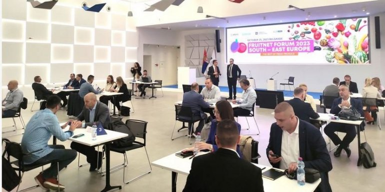 U PRIVREDNOJ komori Srbije danas je održan FruitNet Forum South-East Europe, specijalizovani poslovni događaj za industriju svežeg voća i povrća na kojem je više od 40 proizvođača i izvoznika iz Srbije i regiona Zapadnog Balkana bilo u prilici da se susretne sa 10 prestižnih evropskih kupaca i distributera svežeg voća i povrća, poput Champion-Fruit Kft - Mađarska, ICA - Švedska, Arctic - Poljska/Norveška, Eurogroup - Italija, Consorfrut – Poljska, Greenyard – Belgija i drugih.