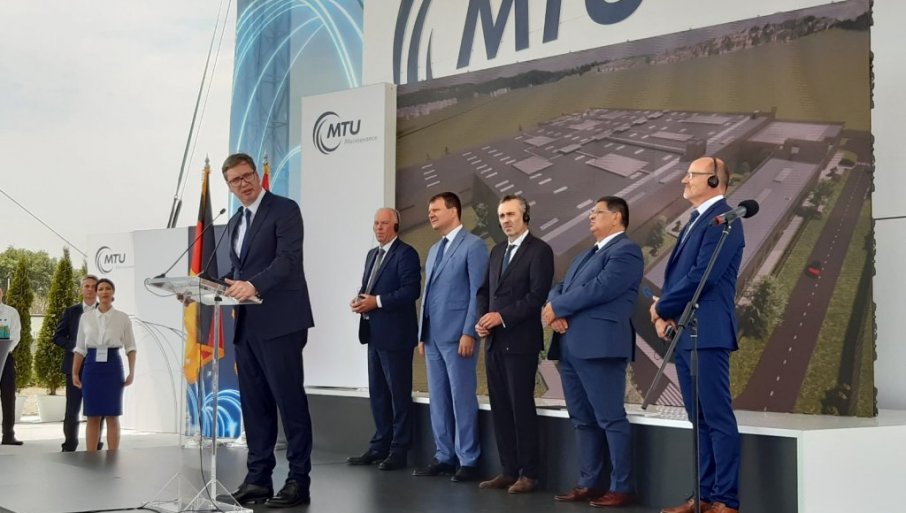 PREDSEDNIK Srbije Aleksandar Vučić prisustovao je ceremoniji povodom početka radova na izgradnji fabrike za popravku aviomotora MTU Maintenance Serbia d.o.o (deo kompanije MTU Aero Engines AGE). Vučić je prethodno održao sastanak sa predstavnicima MTU.