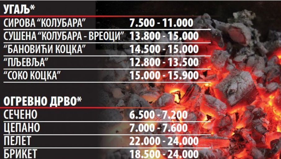 Kubni metar sečenih drva za ogrev košta od 6.500 do 7.200, dok cepanih ide i do 7.600 dinara. Tona peleta se prodaje od 22.000 do 25.000, a briketa 18.500 do 24.000. Potrošači treba da uračunaju i trošak transporta ogreva. Stovarišta obično ne naplaćuju prevoz do mesta koje je udaljeno od 10 do 20 kilometara. Tarifa zavisi od kilometraže i količine koja se transportuje.
