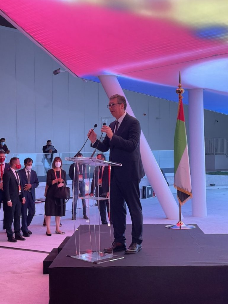 PREDSEDNIK Srbije Aleksandar Vučić govorio je na otvaranju srpskog paviljona na EXPO 2020 u Dubaiju.