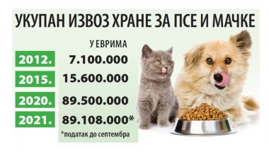 IZVOZ VREDAN 100 MILIONA €: Prodaja hrane za pse i mačke van zemlje, u odnosu na 2020, povećana za 53 odsto