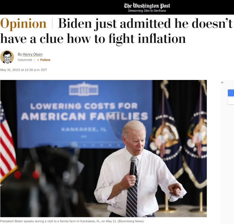 - Predsednik Bajden je konačno izložio svoj plan za borbu protiv inflacije. Ali ova strategija pokazuje ono što su mnogi dugo sumnjali: on nema pojma šta da radi sa rastom cena - piše Olsen.