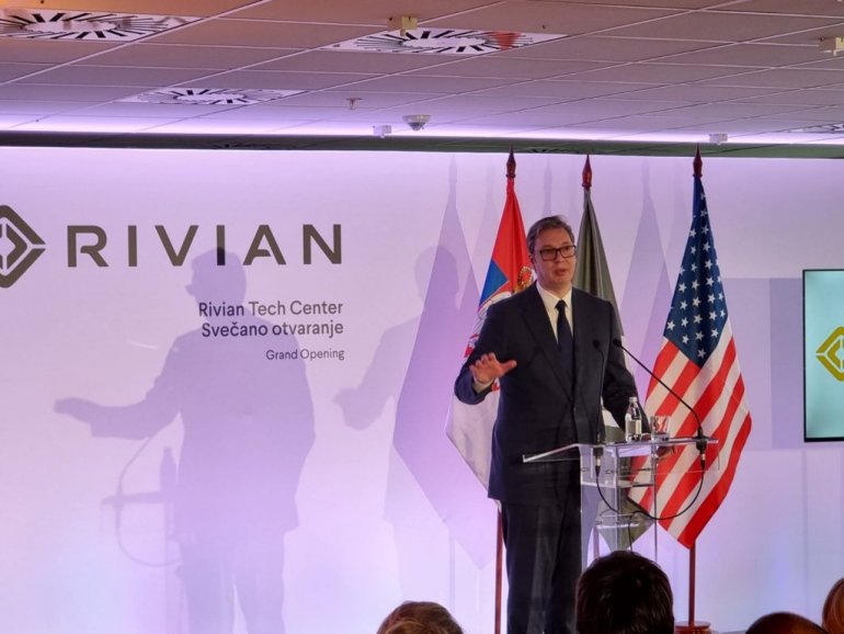PREDSEDNIK Srbije Aleksandar Vučić prisustvuje danas u Beogradu svečanom otvaranju tehnološkog centra američkog proizvođača električnih vozila Rivijan.