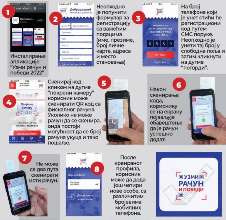 - Novi nagradni ciklus donosi dosta novina i usaglašen je sa novim Zakonom o e-fiskalizaciji koji je počeo da se primenjuje od 1. maja ove godine, što znači da je nagradna igra u potpunosti digitalna - istakao je ministar finansija Siniša Mali. - Na svakom od tih računa postoji QR kod i njegovo skeniranje biće tiket i ulaznica za nagradnu igru "Uzmi račun i pobedi". Ovo radimo kako bi podigli svest građana koliko je važno da se uzimaju fiskalni računi i da se zajedno sa nama bore protiv sive ekonomije. Na aplikaciji će svako moći da otvori nalog. Preko jednog uređaja moći će da se napravi najviše pet različitih naloga, znači sa pet imena i brojeva telefona, a sa ciljem da mladi mogu da prijave starije, koji nemaju odgovarajuće mobilne telefone, a sve kako niko ne bi bio diskriminisan.