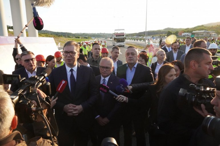 - Njihov rezultat je da zaustave Srbiju na dva ili tri sata, a moj je da smo izgradili nešto zbog čega će Srbija ići brže. Zbog čega ćemo imati veće plate i penzije, da pomognemo roditeljima, da pomognemo zapošljavanje, za to živite i borite se. Ovo su divni dani - ističe Vučić, i dodaje da ovakve projekte niko ne može da izbriše.