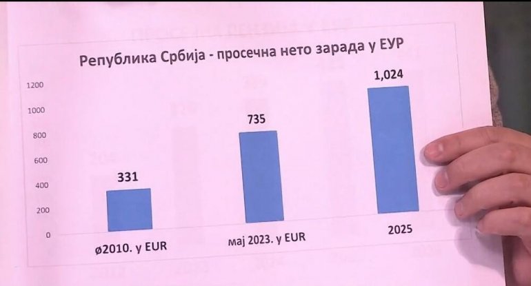 Kad je prosečna plata u Srbiji u pitanju, 2010. je bila 331 evra, u maju je bila 735 evra, do 2025. biće 1024 evra, najavio je on.