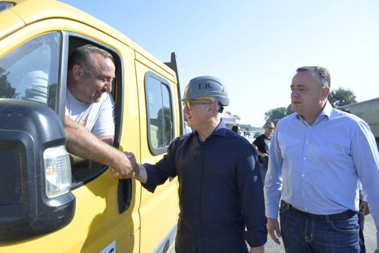 - Počelo je asfaltiranje prve deonice Dunavskog koridora - rekao je Vesić prilikom obilaska radova na delu gde je urađena probna deonica asfalta u dužini od sto metara u punom profilu leve saobraćajne trake.
