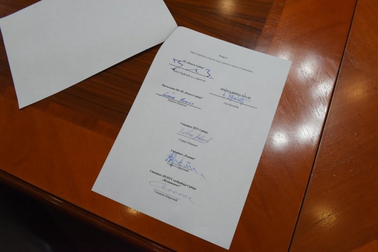 Na sastanku u Vladi Srbije postignut je dogovor sa predstavnicima radnika Pošte Srbije, na osnovu sporazuma koji su potpisali Predsednica Vlade Republike Srbije Ana Brnabić i predstavnici sindikata.